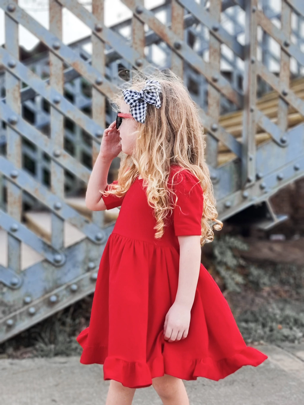 Vestido Emma , compuesto de amplia falda terminada en volado que llega por encima de la rodilla: ¡perfecta para combinar con nuestras medias!
